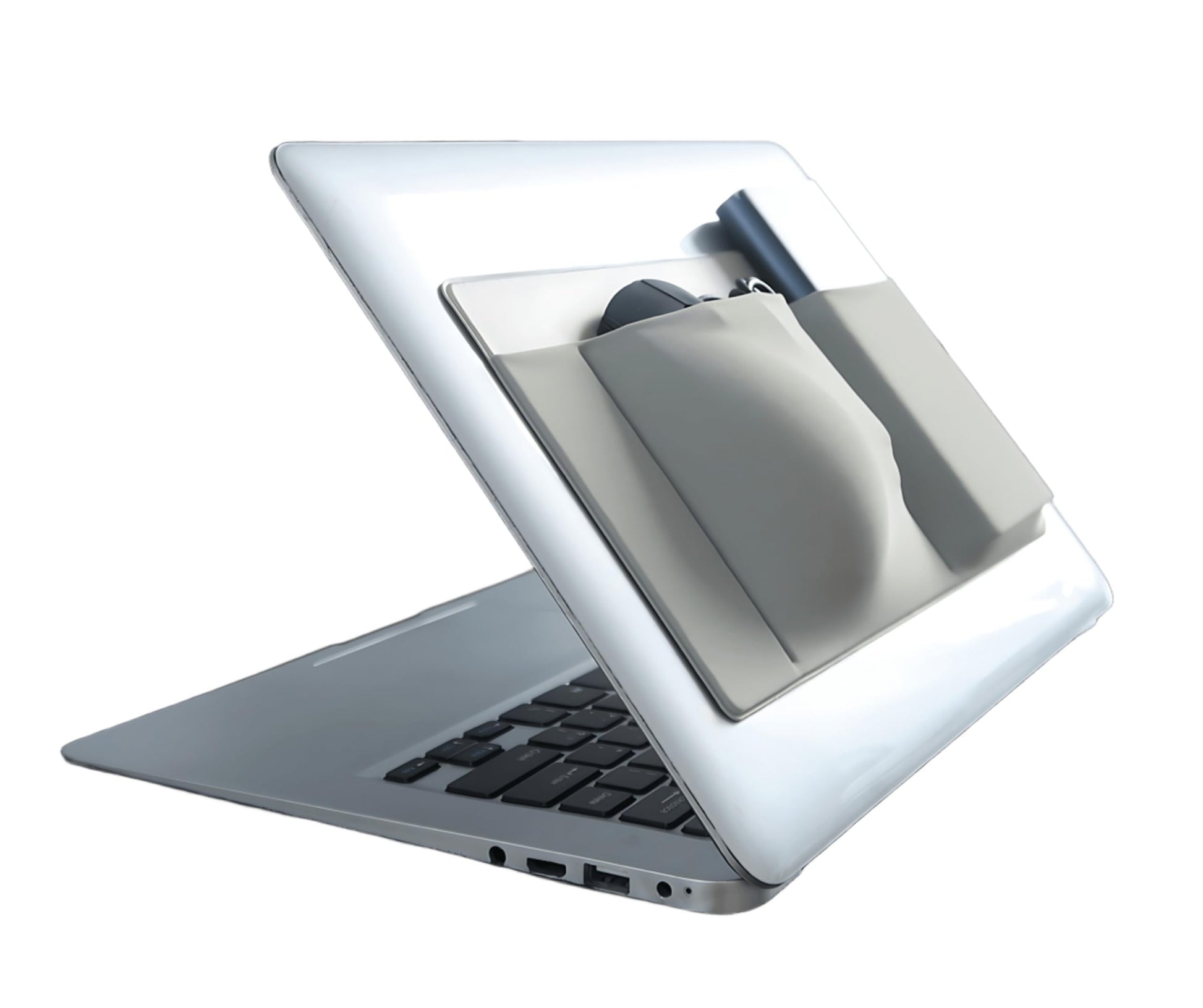 - Stick-on mouse & tech pocket — slim, minimalist design turns any MacBook or PC into a pocket laptop organizer; mouse holder for laptop stick on keeps peripherals handy.