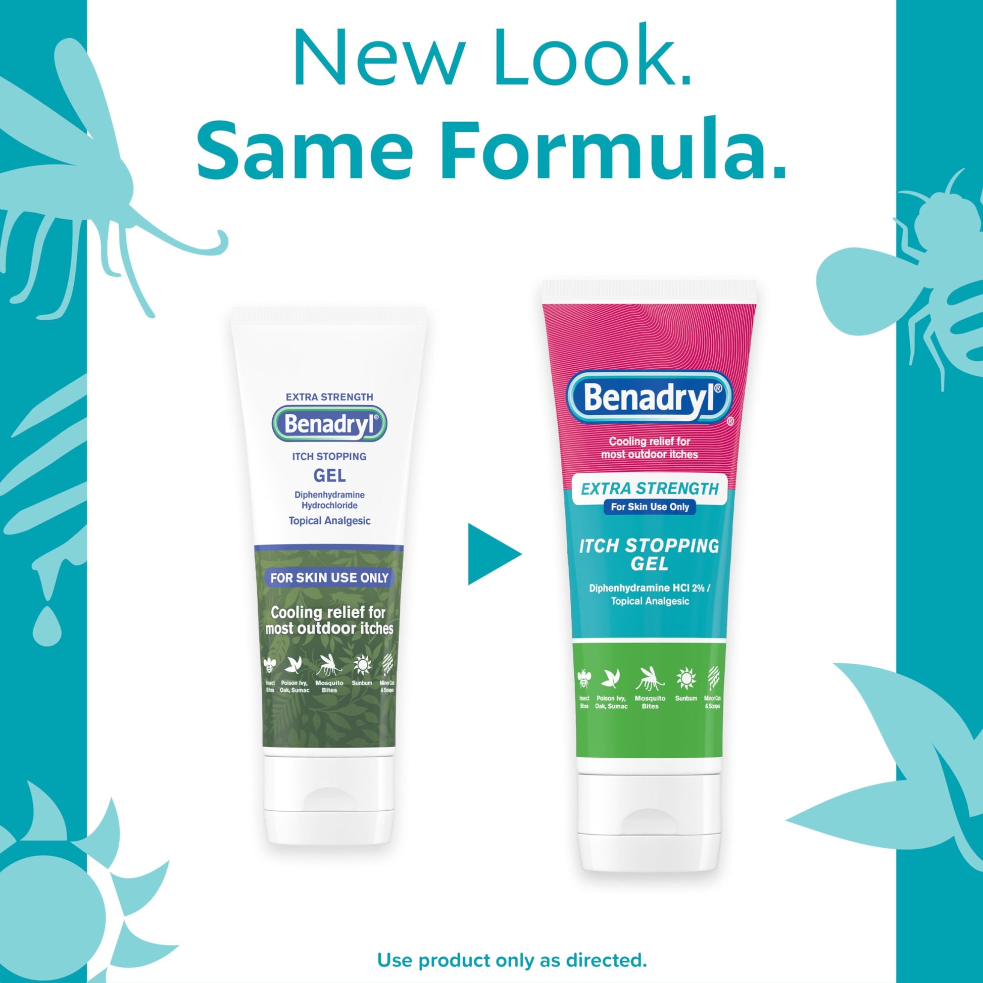 Details: Benadryl Extra-Strength Itch Stopping Gel works when you need it most and provides fast and cooling relief from pain and itching. Made with 2% diphenhydramine HCI topical analgesic, this cooling anti-itch and pain relief gel blocks the histamine that causes minor pain and itching associated with insect bites, scrapes, minor skin irritations, burns, and cuts as well as relief of pain and itching associated with sunburns. It also dries the oozing and weeping of poison ivy, poison oak and poison sumac. This soothing topical gel is intended for ages two and up and is great to keep on hand for Extra Strength Itch Relief during outdoor activities such as camping, hiking or taking a walk with the family.