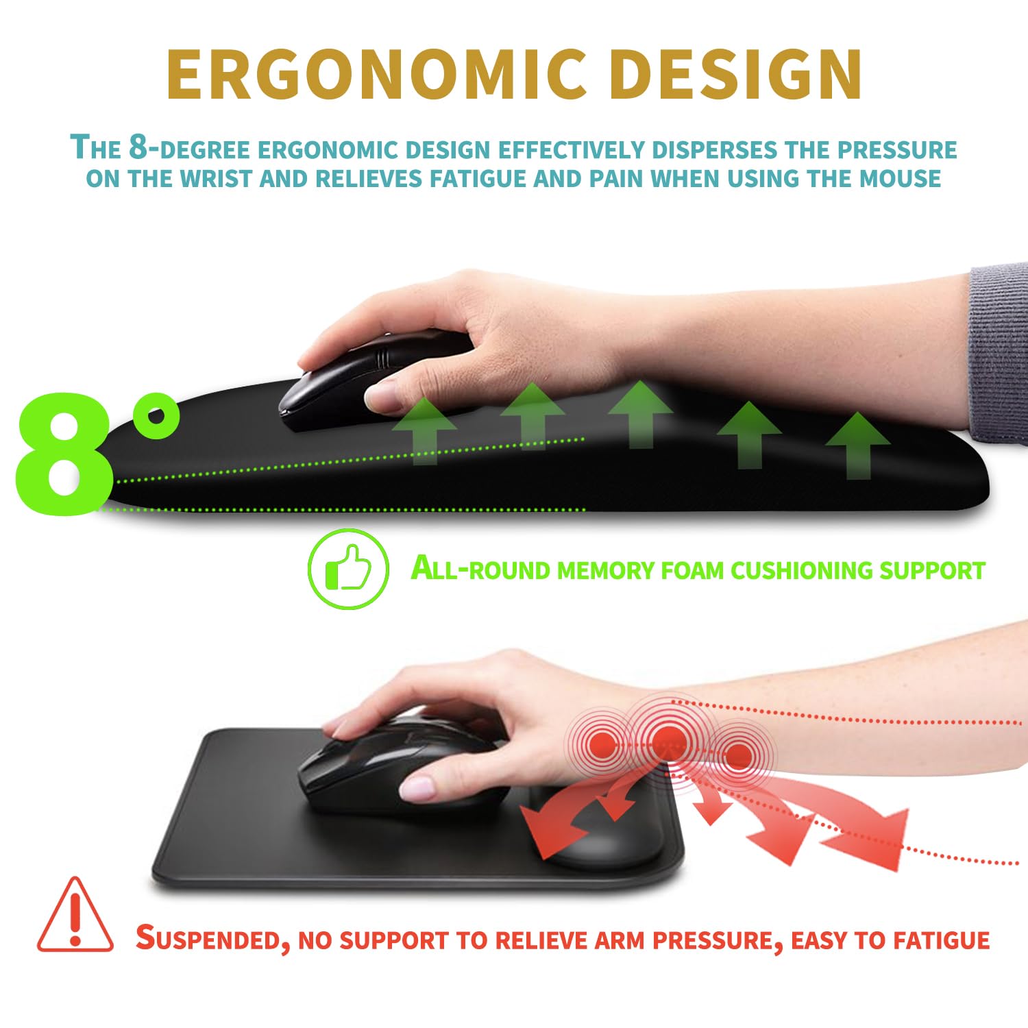 - 【Ergonomic Massage Design】The innovative ergonomic 8-degree slope and massage bump design perfectly support the wrist and palm. Massage bump design can effectively relieve wrist pain and fatigue, improve carpal tunnel syndrome (CTS), strengthen the air circulation between wrist and mouse pad, prevent sweating, and keep your wrist in the most comfortable state.