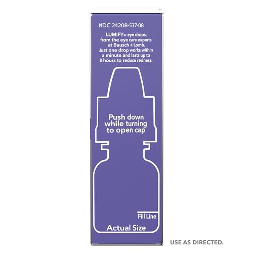 Details: LUMIFY eye drops significantly reduce redness to help eyes appear whiter, brighter, and more radiant. LUMIFY is a unique, FDA approved formulation, that was developed by doctors and is clinically proven to reduce redness in 1 minute and last up to 8 hours. LUMIFY works differently to selectively target redness with a lower risk of potential side effects. Contains absolutely no bleach or dyes.Adults and children 5 years and older. Instill 1 drop in the eye(s)every 6-8 hours, no more than four times daily.