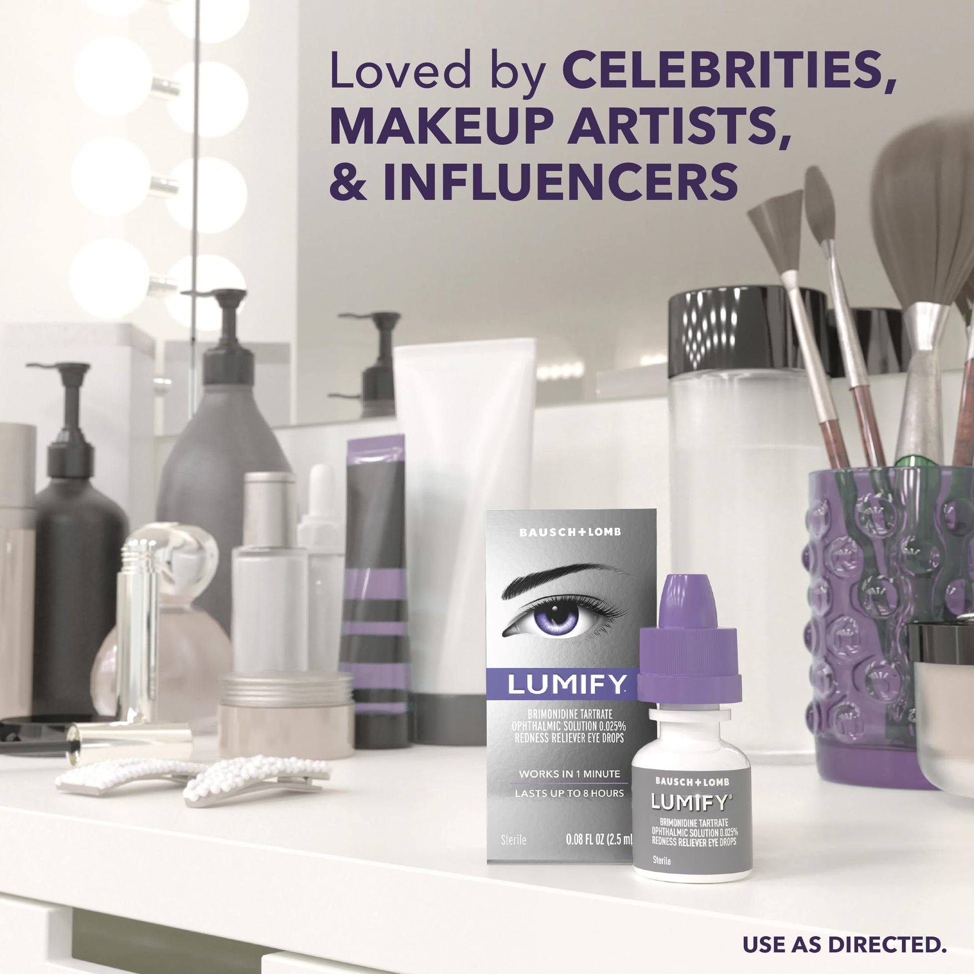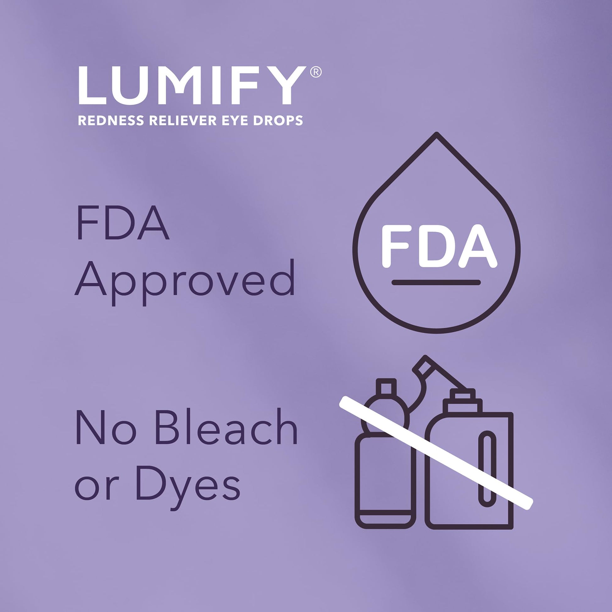 - FDA APPROVED: LUMIFY contains no bleach or dyes and is FDA approved. LUMIFY eye drops significantly reduce redness to help eyes appear whiter, brighter, and more radiant. It’s the #1 Eye Doctor recommended redness reliever (based on IQVIA survey)