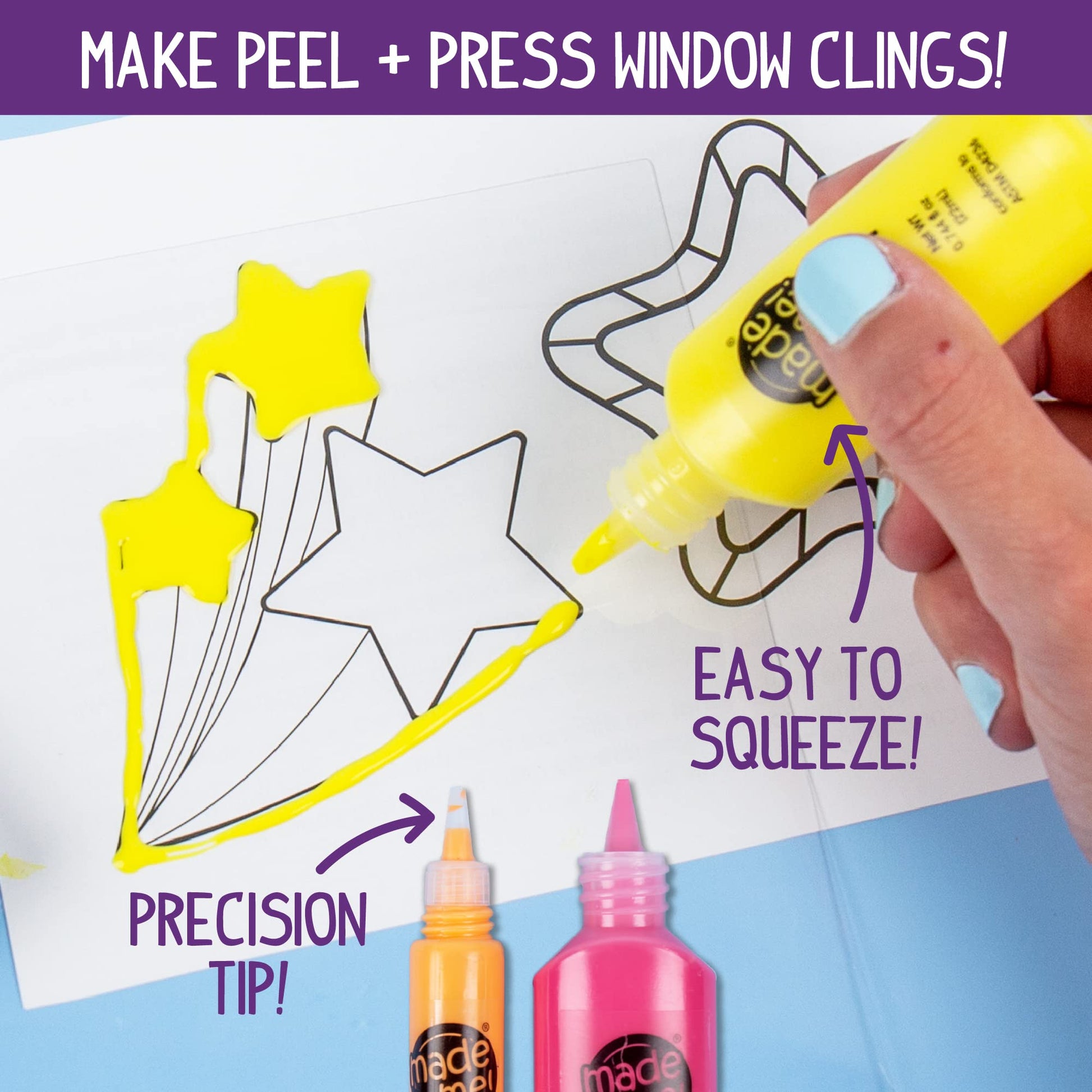 - 5 EASY-TO-USE PAINT PENS & TUBES: With this craft kit you can make one-of-a-kind window clings using an acetate sheet and paint pens that are perfectly sized for little hands.