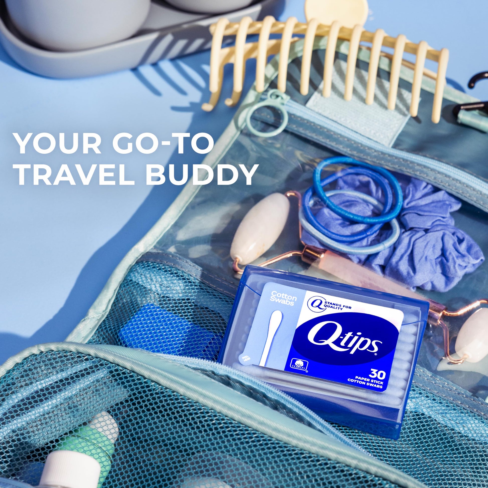 Details: Introducing Q-tips Original Cotton Swabs, the ultimate home and beauty companions. This compact travel pack is perfect for when you’re traveling or on-the-go. With the softest tip at each end made from 100% cotton, these trusty tools are here to help you conquer life's littlest challenges with love and reliability. From tackling hard-to- reach household chores to delicate tasks like first aid and beauty, Q-tips delivers the quality you can count on. The “Q” stands for “Quality,” something we’ve stood by since we were founded by Leo Gerstenzang in 1923. Today, Q-tips is the leading cotton swab brand and has been trusted for superior softness, versatility and unmatched quality for more than 100 years. At Q-tips, we care not only for you but also for the environment. Our Q-tips are eco-warriors; all of our packaging includes information on what components are recyclable. It's a win-win for you and Mother Earth!