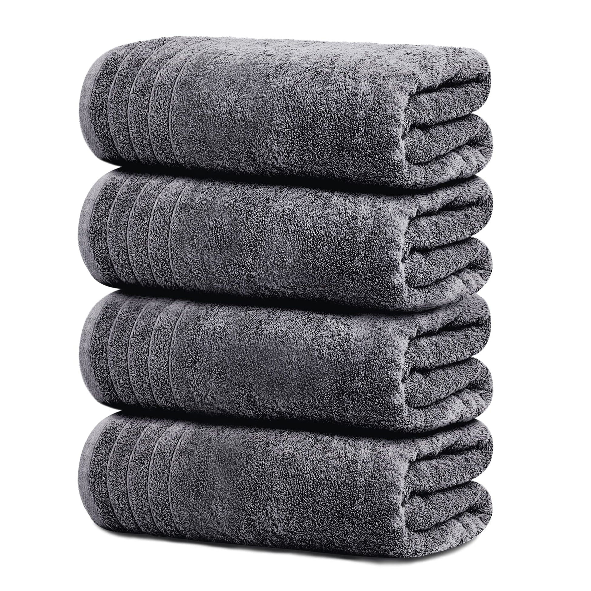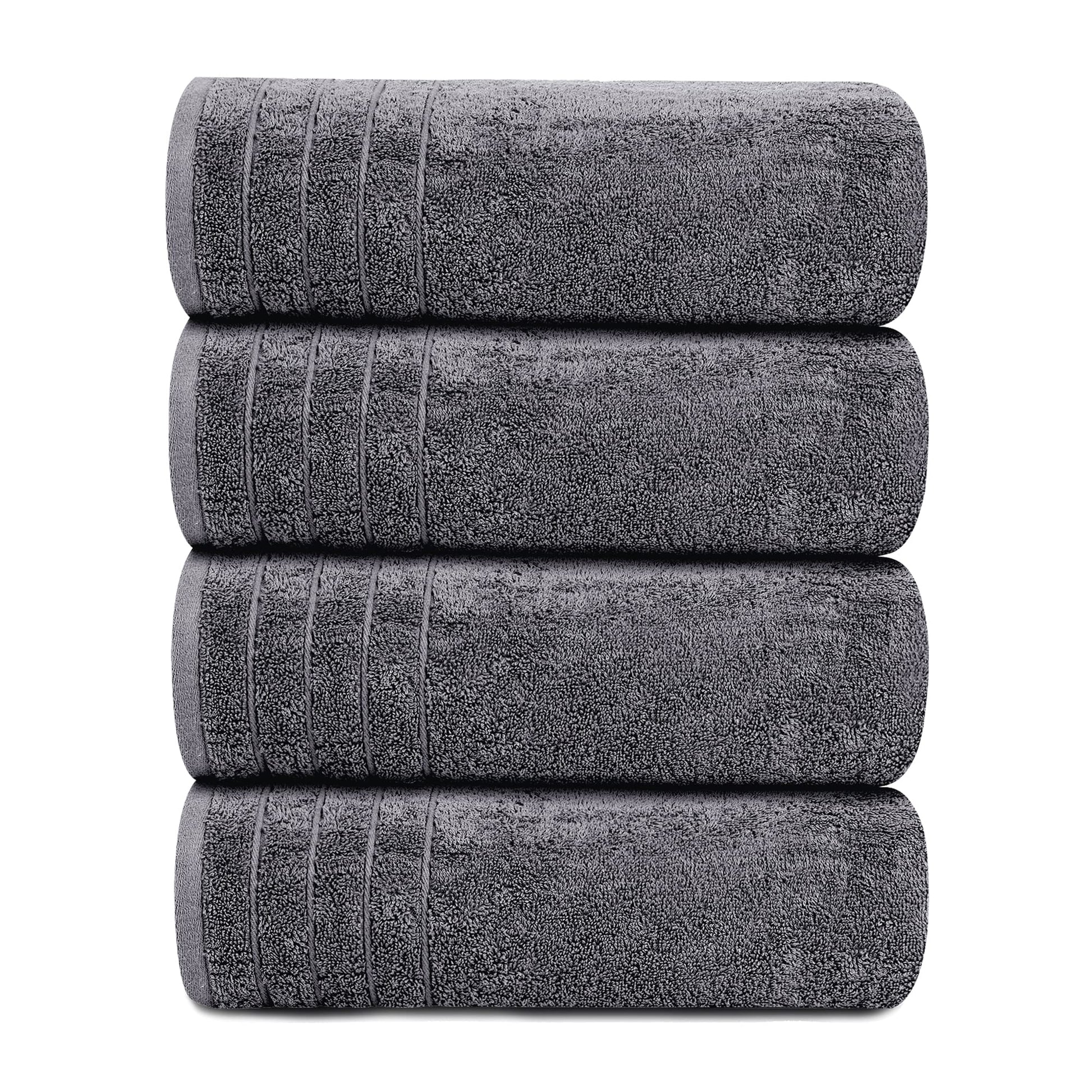 Extra Large Bath Towels, 4 Pack – 30x60 Inch Soft & Quick Dry Cotton, Dark Grey