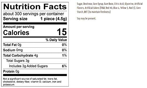 - CLASSIC BUBBLE GUM AND FRUITY FLAVORS - Four individually wrapped flavors include Bubble Gum, Watermelon, Grape and Apple