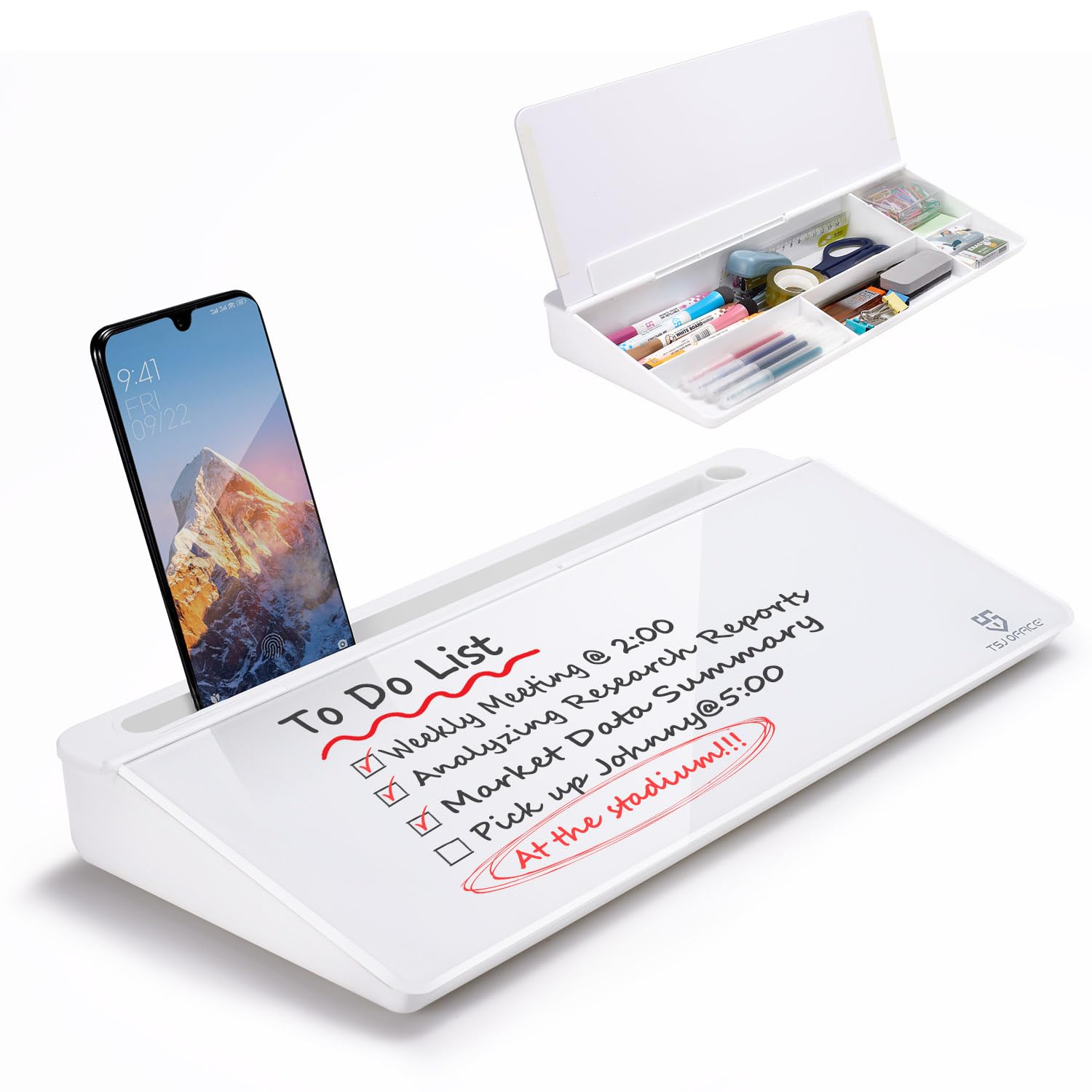 - SMOOTH WRITING & EASY TO WIPE: TSJ OFFICE mini desktop computer pad comes with a smooth and durable temple glass dry erase writing surface. This white board allows you to write and wipes clean with ease over and over. Our easel whiteboard always stays white and easy to read.
